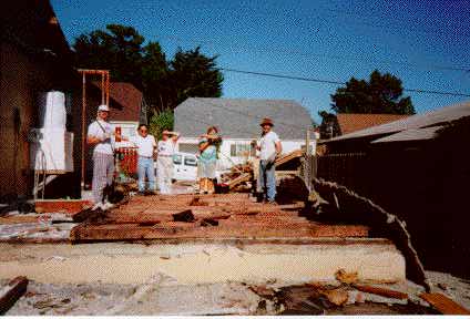 We decided that the best way to bring the garage down was to invite all our friends over for a De-Construction Party. Everybody was to bring gloves and any sledgehammers, crowbars, etc. that they had.