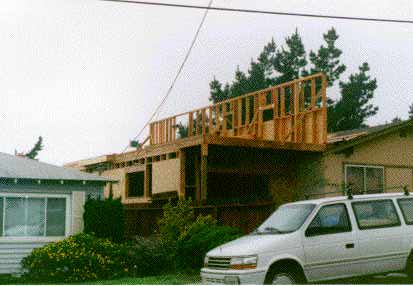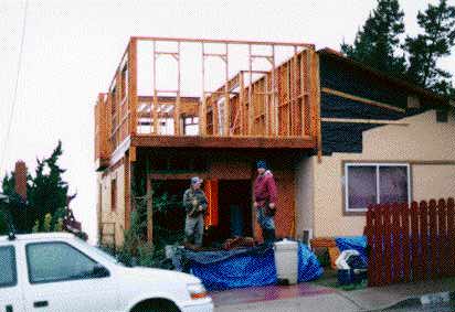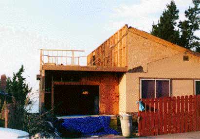 The first wall up on the second floor required the removal of part of the roof on the house ....