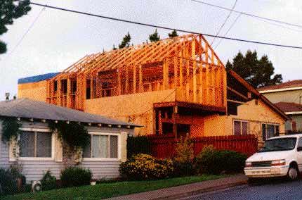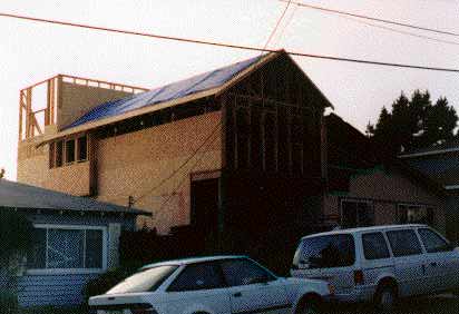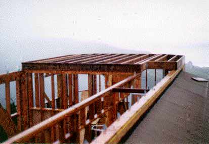 The second floor roof trusses were sheathed and then protected with a tarp.